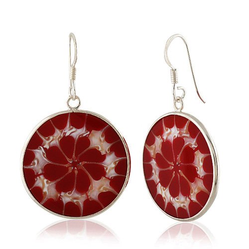 @@@ Chuvora Sterling Silver Genuine Top Shell with Red Resin Inlay Round Hook Earrings - - Review by Ethan