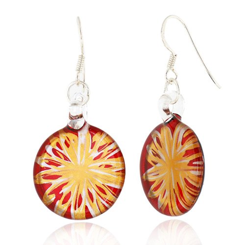 @@@ Product Details : Chuvora Sterling Silver Hand Blown Venetian Murano Glass Earrings Red with Yellow Flower
