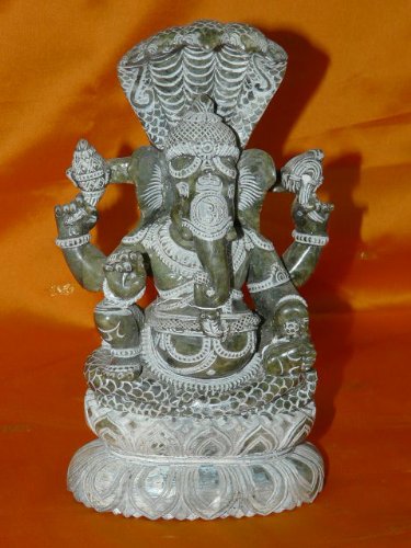 - Seated Ganesha on Lotus Base with Nagas Stone Statue 8 Inch from India