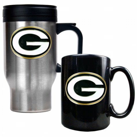 Buy Now! NFL Green Bay Packers Travel Mug & Ceramic Mug Set - Primary Logo